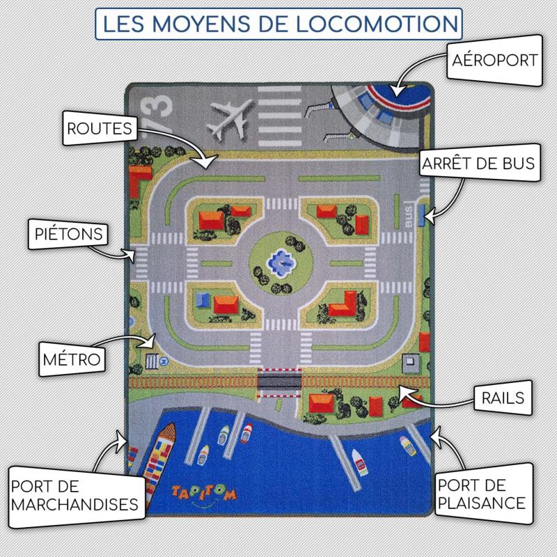 - Ce tapis favorise le partage et la coopération entre enfants, mais aussi sensibilise l'enfant sur tous les moyens de locomotion dans une ville.